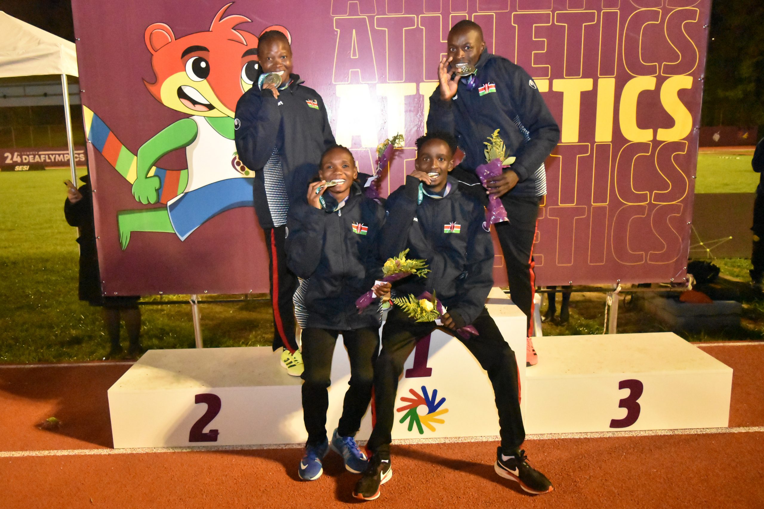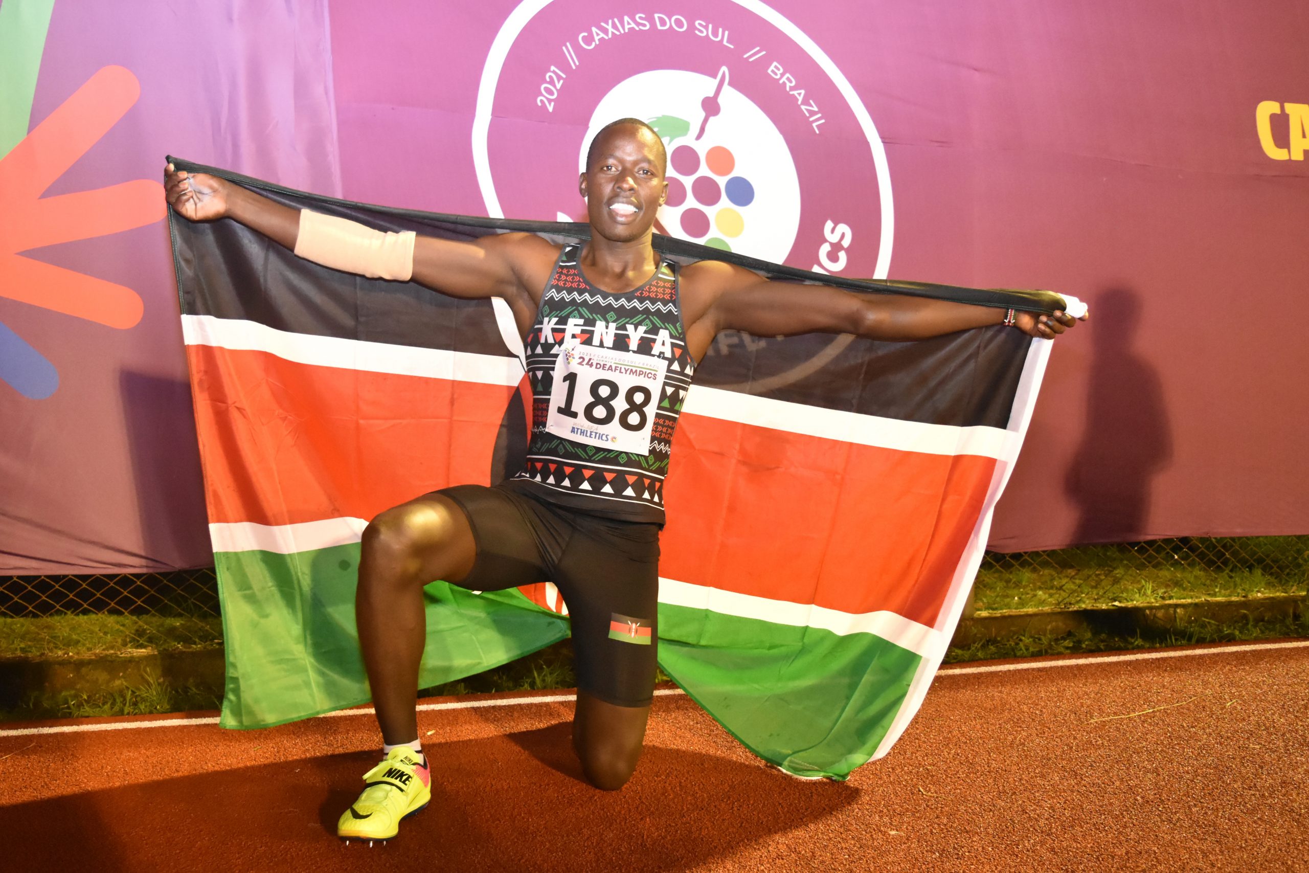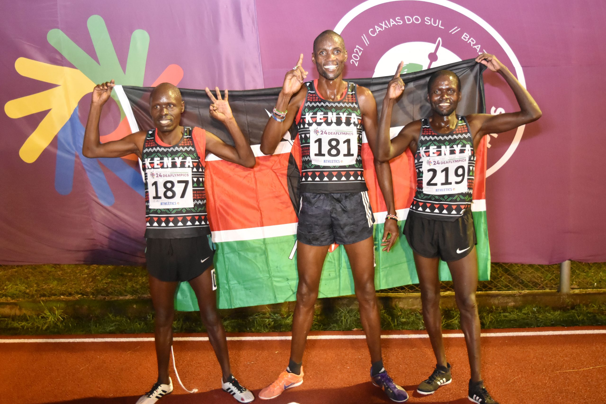 Record holder Simon Cherono Kibai successfully defended his men’s 10000m title at the ongoing 24th Summer Deaflympics Games in Caxias Do Sul, Brazil on Monday. Kibai led compatriots Peter Toroitich and David Kipkogei to a podium finish in that order.